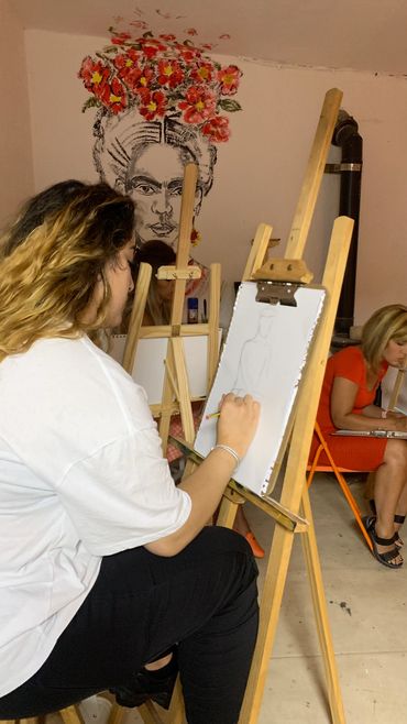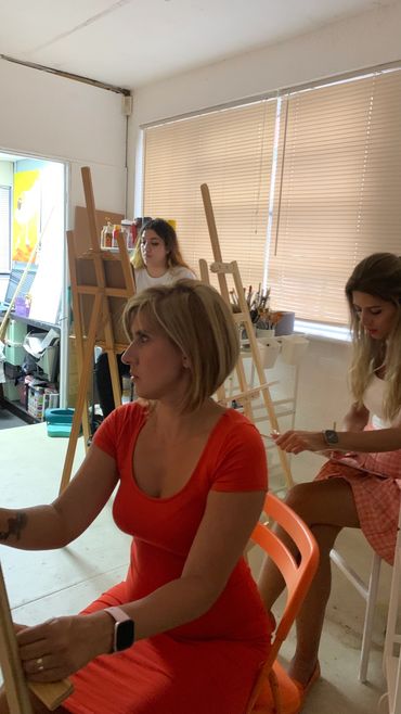 We invite students to join me on one of the above time slots for a 2 hour session, (one and half hour for under 12) where we will go through each stage of creating different types of paintings, and techniques and help you understand the materials used.